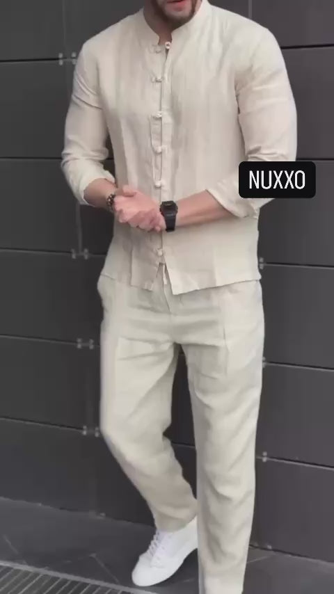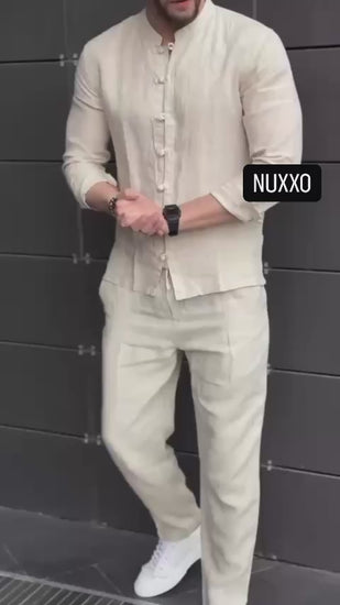 Könnyű, természetes alapanyagból készült szett, amely tökéletes választás a nyári napokra – elegáns, mégis kényelmes viselet minden alkalomra.