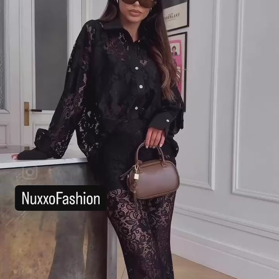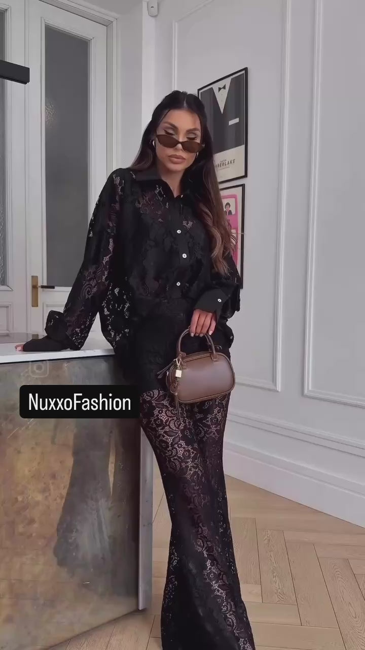 Merész, mégis kifinomult megjelenés. A NXX111-es szett áttetsző fekete csipkéből készült, amely finoman követi a test vonalát, kiemelve a nőies formákat.