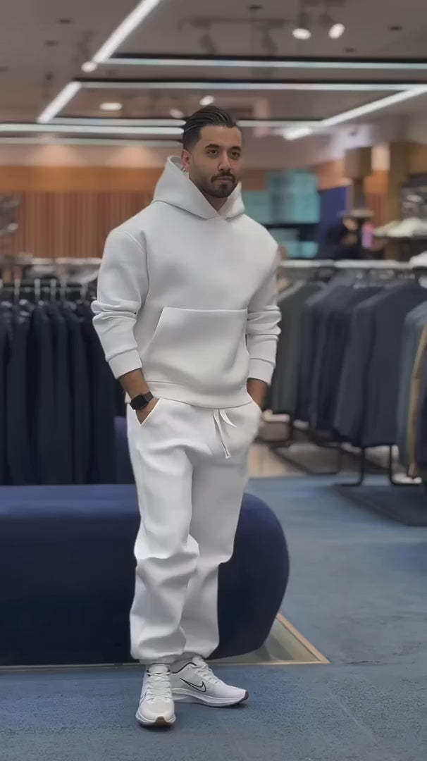 A NXX49 tréning szett a letisztult, sportosan vagány megjelenést hozza – pont azt, amit egy kényelmes, mégis stílusos hétköznapi szettől vársz. A kapucnis felső magasabb nyakrésszel és kenguruzsebbel készült, a hozzá passzoló nadrág pedig laza, komfortos viseletet ad egész napra. Ideális városi rohangáláshoz, utazáshoz, edzés előtti/utáni viseletnek vagy otthoni lazuláshoz is.